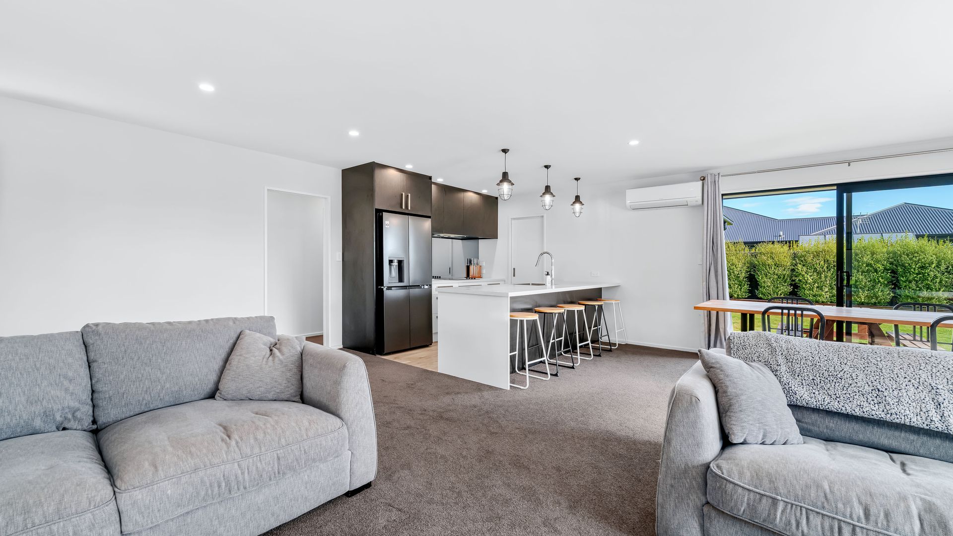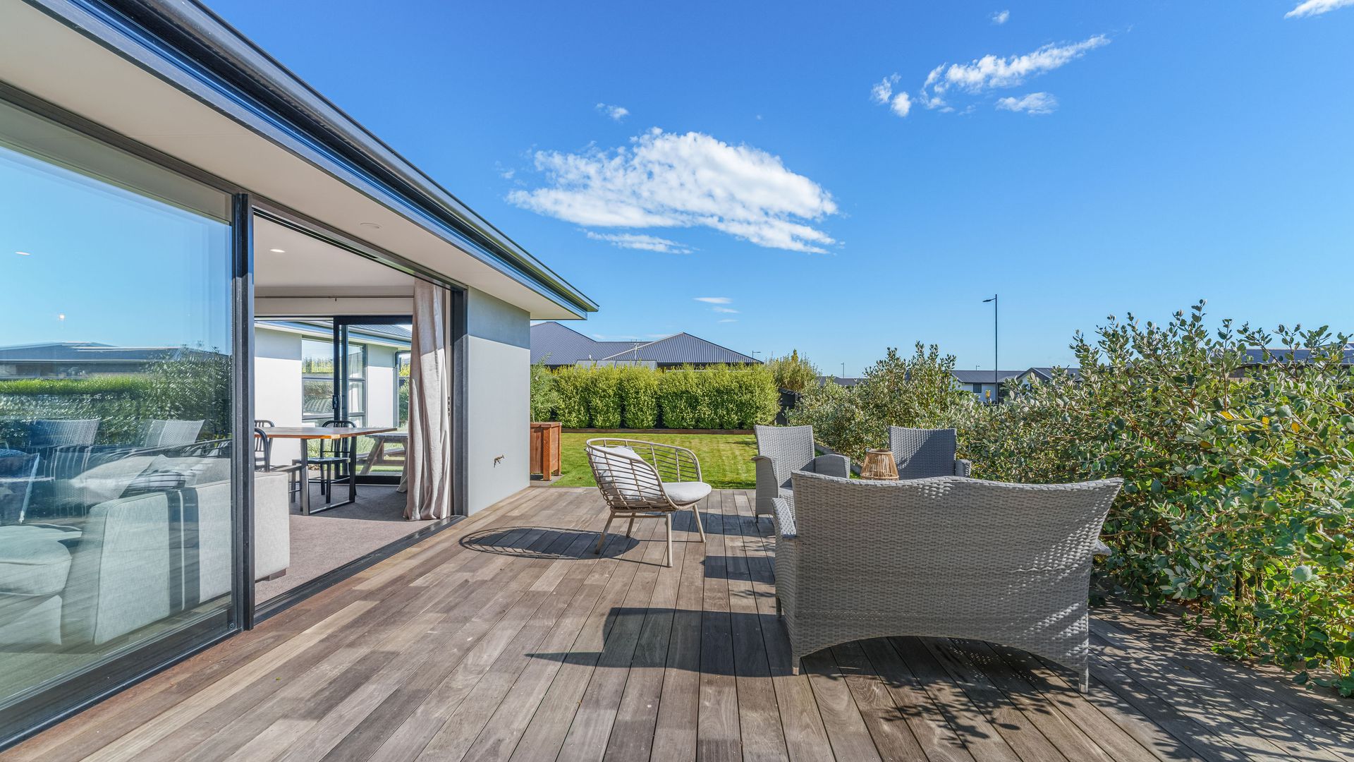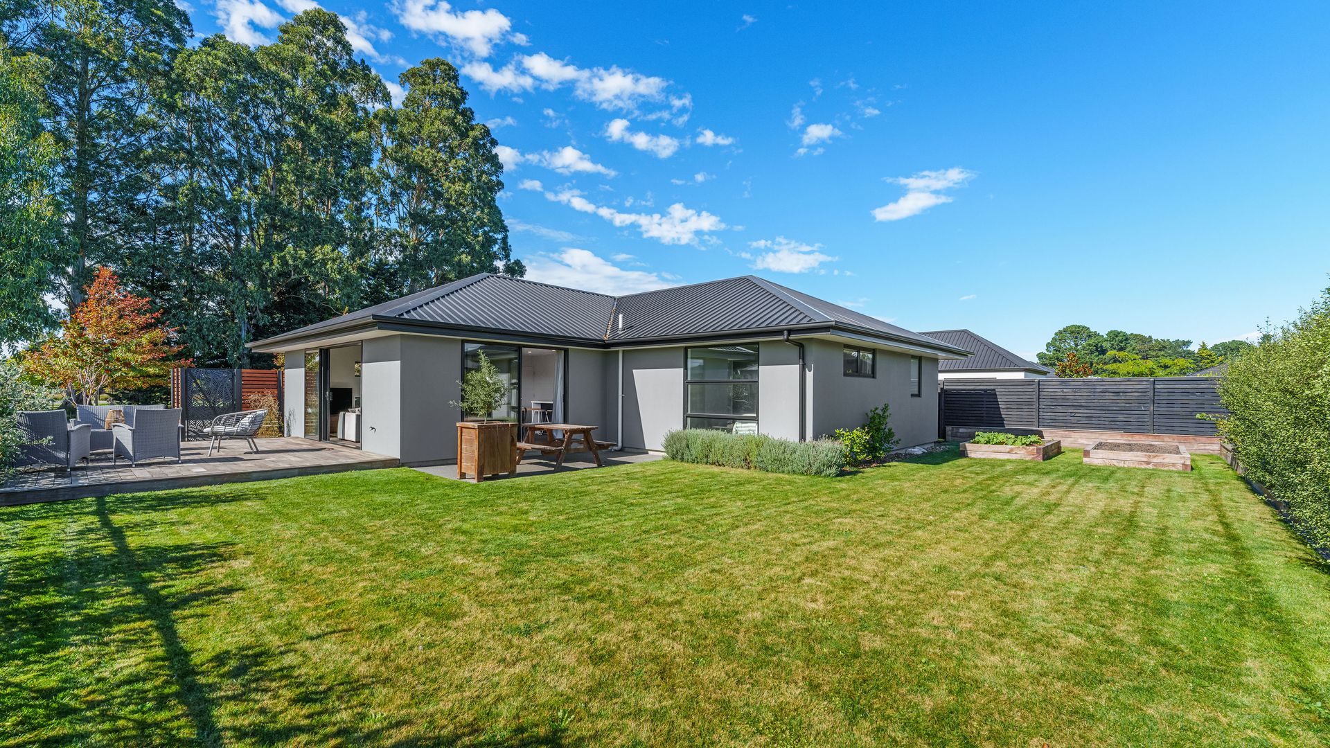 Positioned directly across from Foster Park, this modern home combines everyday comfort with a location that offers space, outlook and convenience. From the moment you arrive, the established landscaping and trees create strong street appeal, complemented by a plaster and cedar exterior that gives the home a modern feel. Inside, the home centres around an open plan kitchen, dining and living area designed for easy living. The kitchen is well-sized and supported by a generous walk-in pantry, providing excellent storage and functionality. The living space flows seamlessly out to a private decking area, where you can relax or entertain while enjoying the open outlook with no direct neighbours on one side.