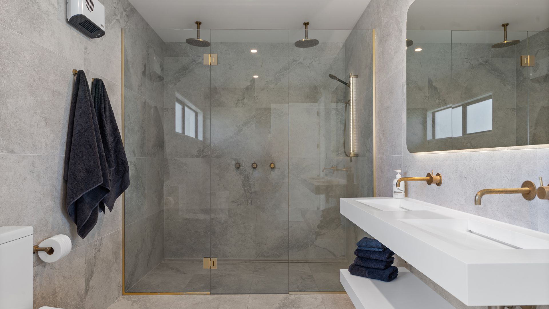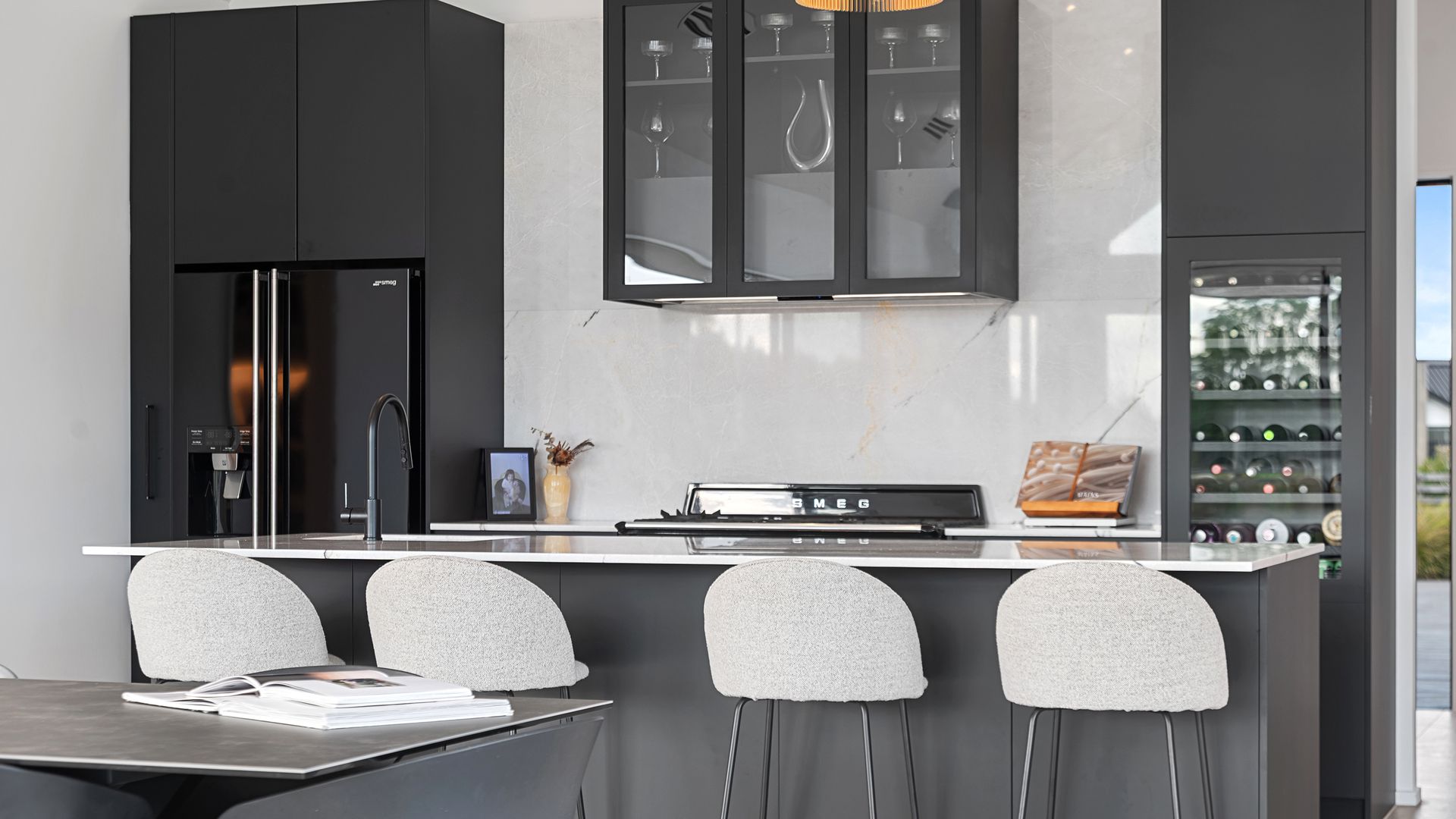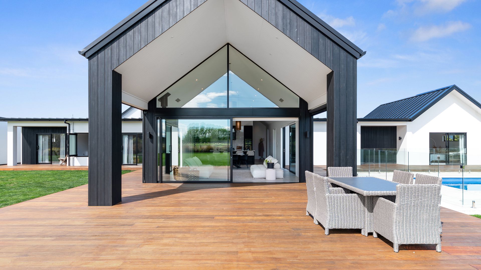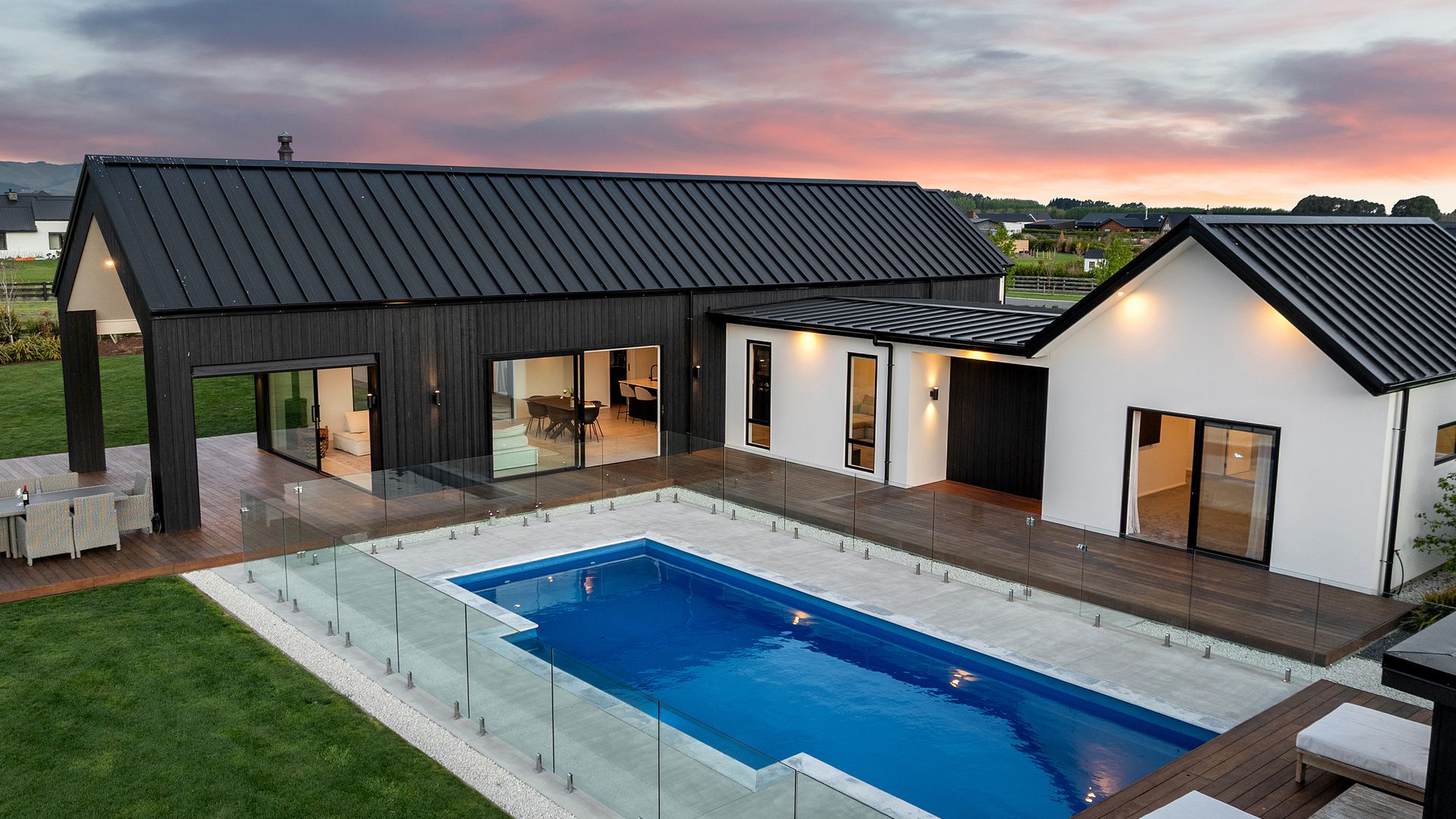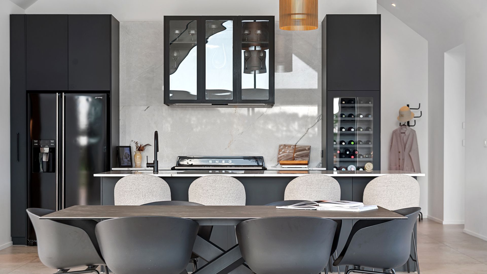The beautifully crafted home offers modern elegance combined with functional and practical everyday living. The heart of the home is the kitchen, featuring an expansive standalone bench with a marble benchtop, designer cabinetry, a Smeg Victoria stove, and a butler's pantry. This overlooks the expansive, light, and bright living area, featuring a cathedral ceiling and easy access to the covered outdoor entertaining area and heated pool area.