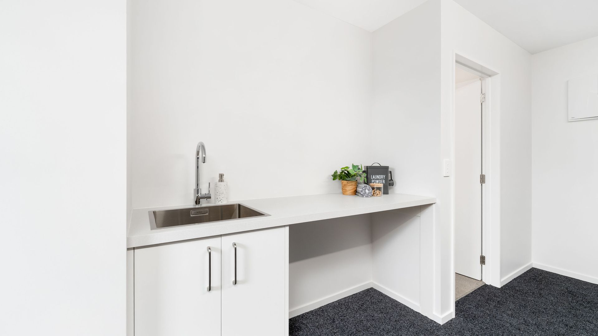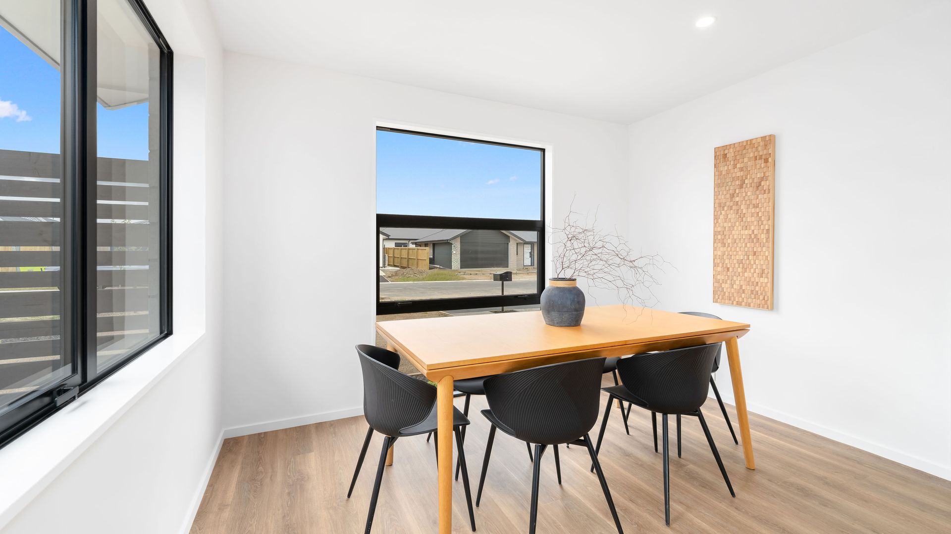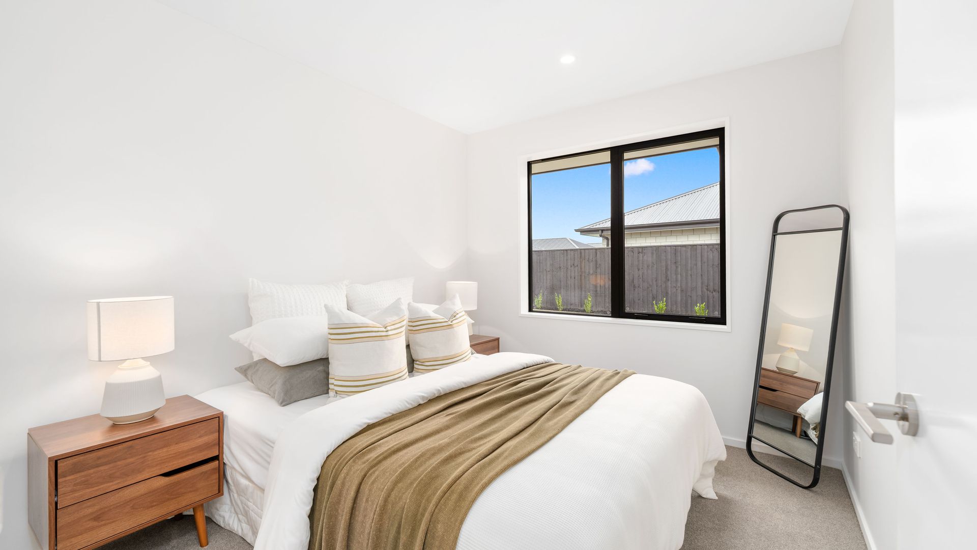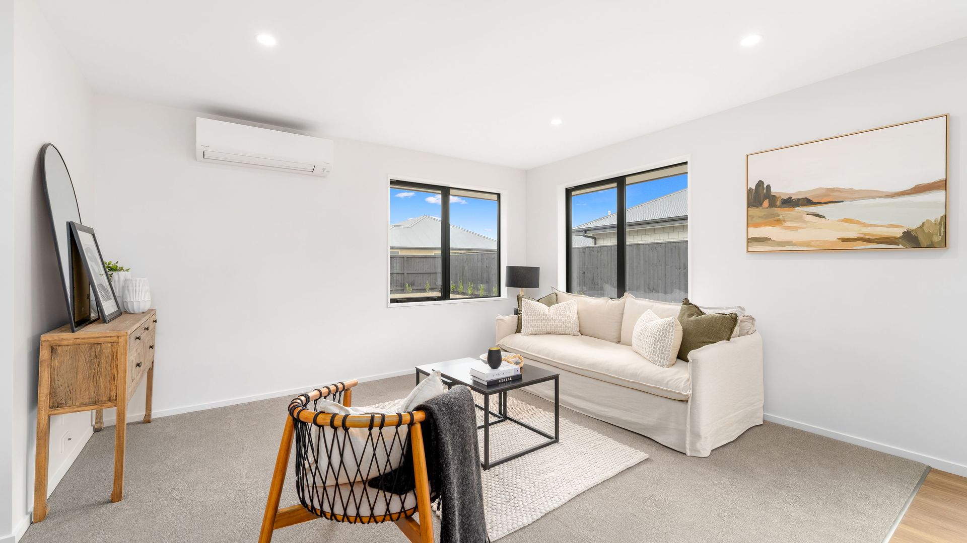 Sleek open-plan kitchen, complete with a walk-in pantry, seamlessly connects to the dining and living areas, creating a practical, modern hub for everyday life and entertaining. Large sliders open to a finished patio and neat, low-maintenance gardens, keeping outdoor living straightforward and enjoyable from day one.