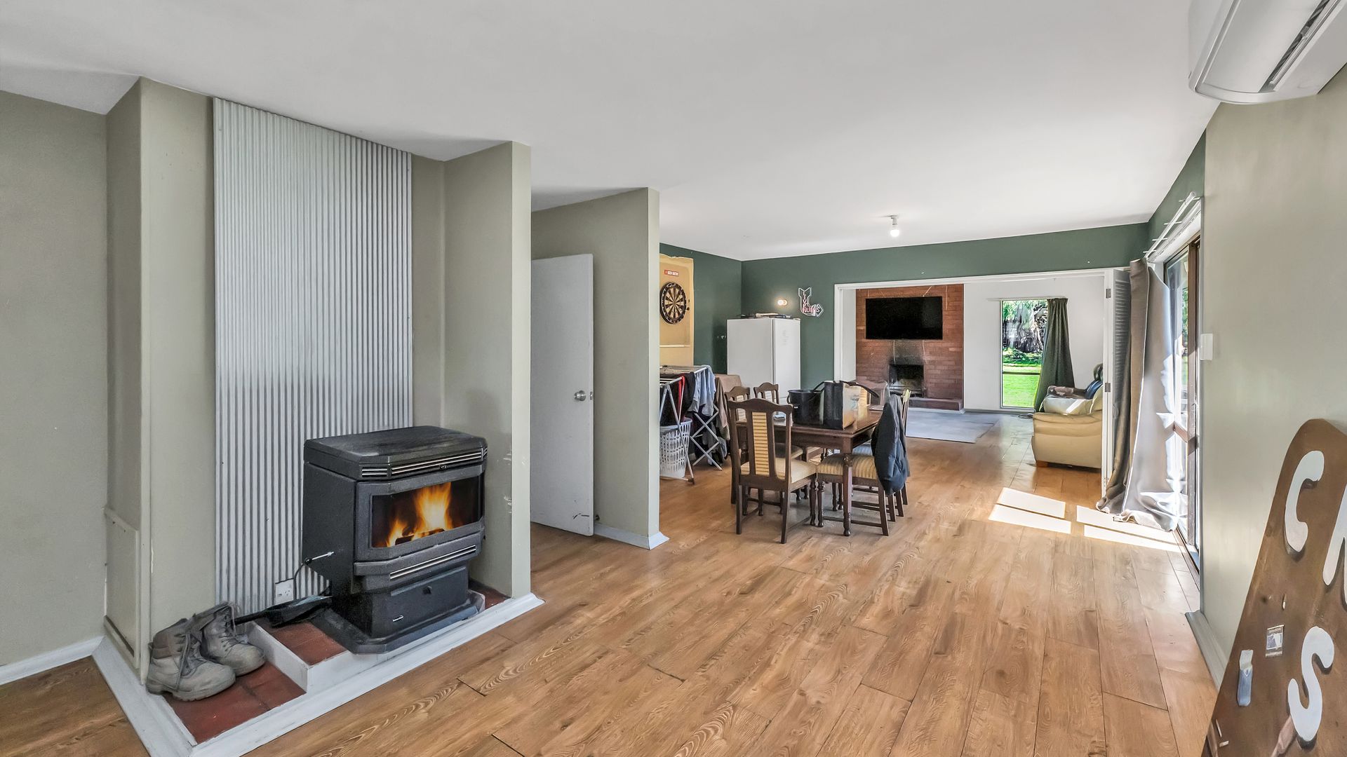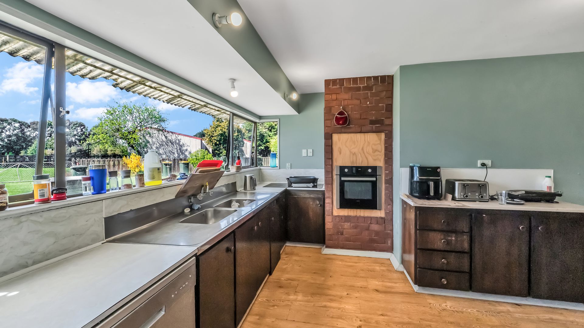 Sitting on 4.35 hectares, this lifestyle block offers serious potential. Whether you’re looking to make your move to lifestyle living, renovate or start fresh with a brand-new build, the options here are endless. At 322m², this home offers five bedrooms and three bathrooms, providing ample space to reimagine. The open-plan kitchen features a walk-in pantry and dining area, both of which are warmed by a heat pump. The lounge boasts dramatic cathedral ceilings and an open fire. A bonus rumpus room provides endless possibilities, such as a games room, teen retreat or creative studio.