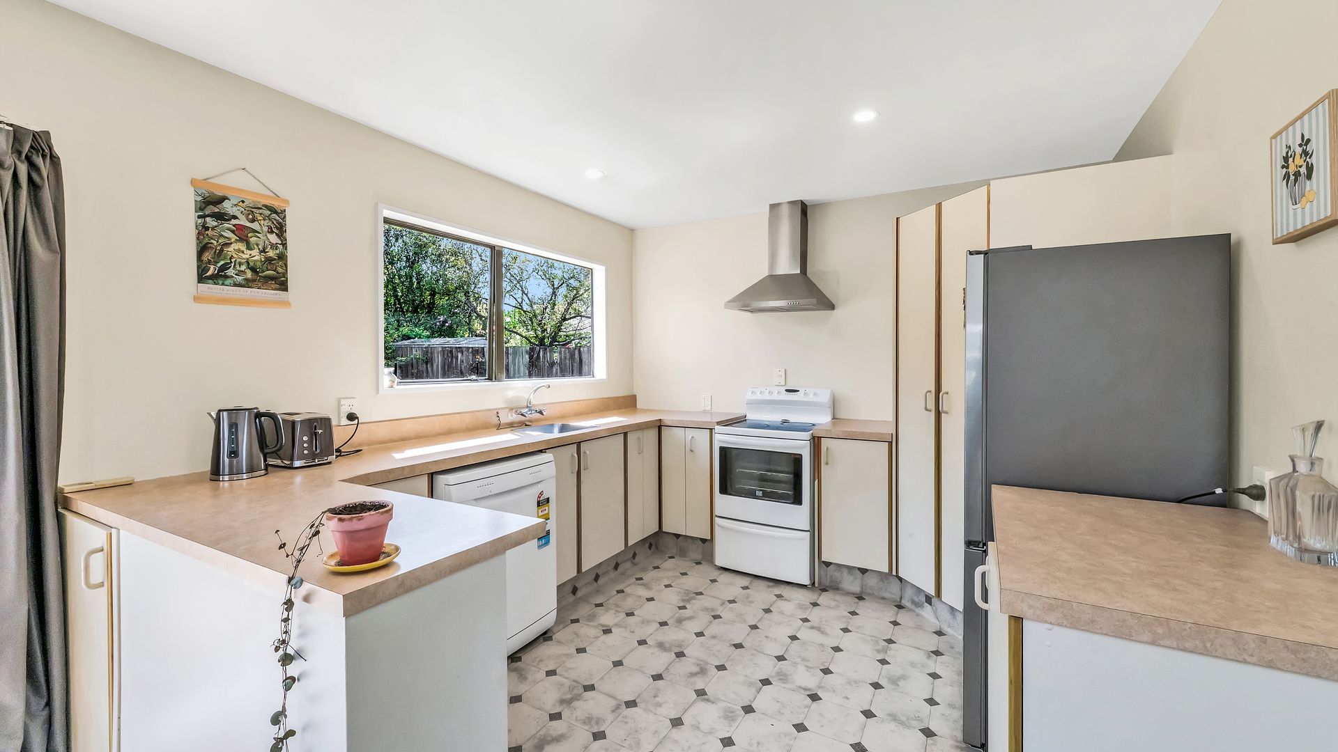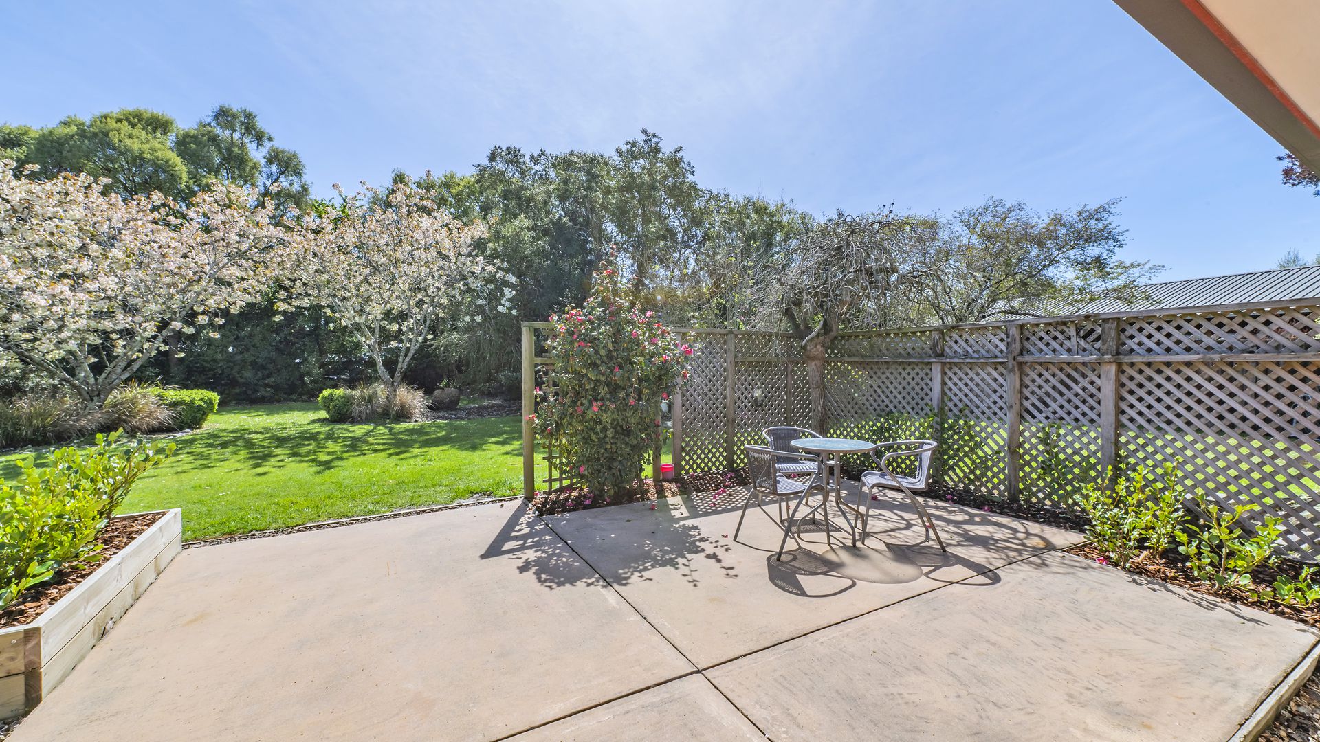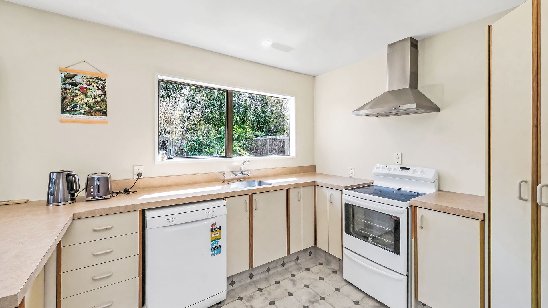 The home has undergone recent renovations, including a new bathroom. It features three generously sized bedrooms, along with a practical family-sized kitchen, adjoining a light and bright open-plan dining/living area with easy access to the north-facing patio. A verandah provides protection from the elements, the perfect place to sit and enjoy the secluded botanic backyard with its mature plantings and trees.