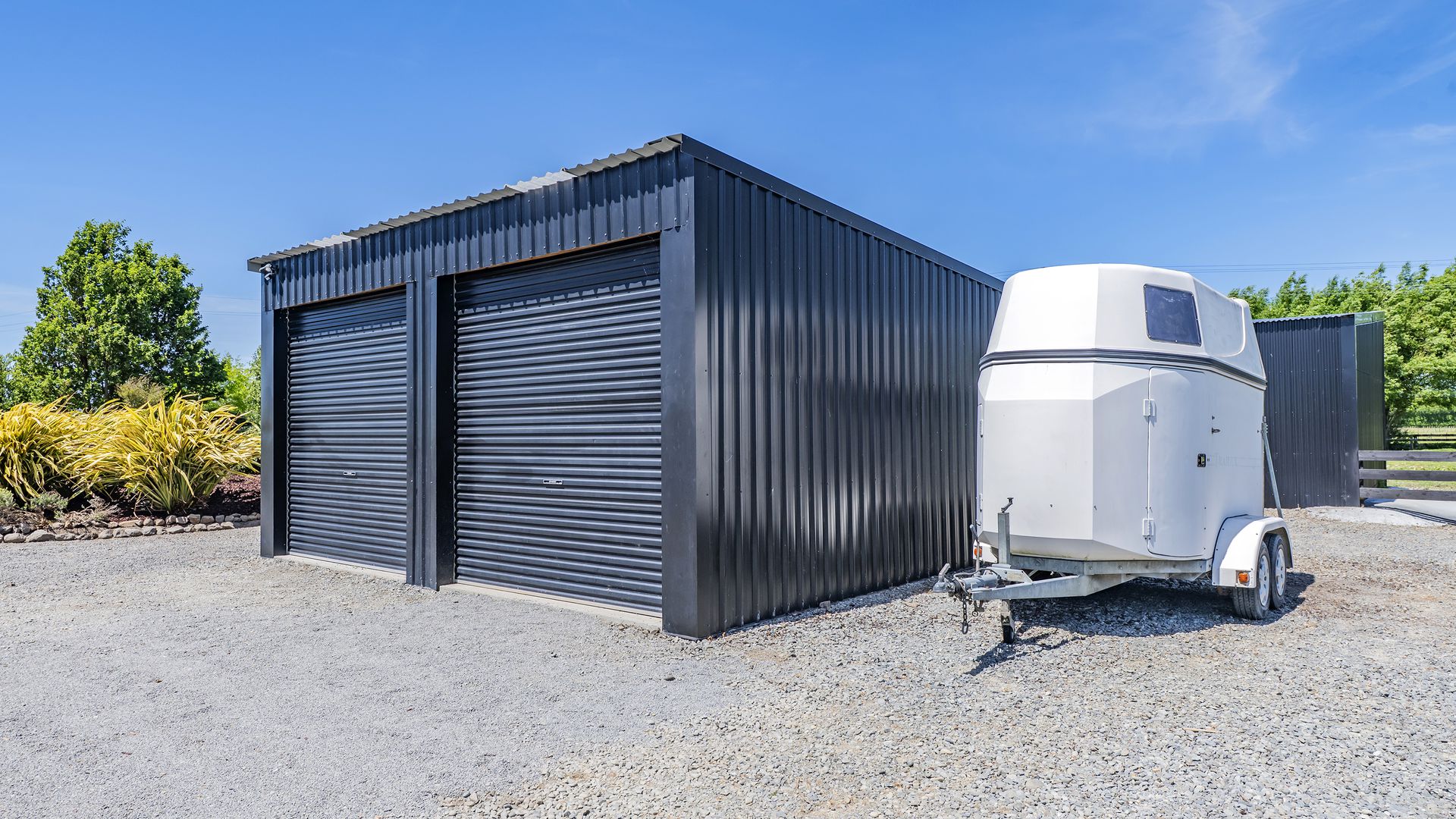 • An internal double garage plus two large sheds