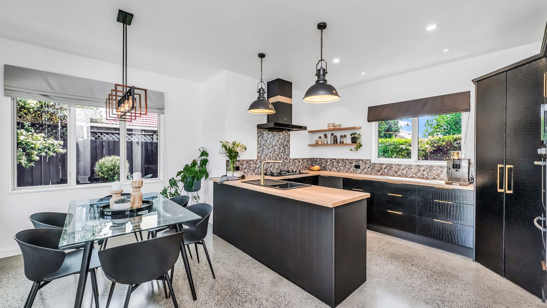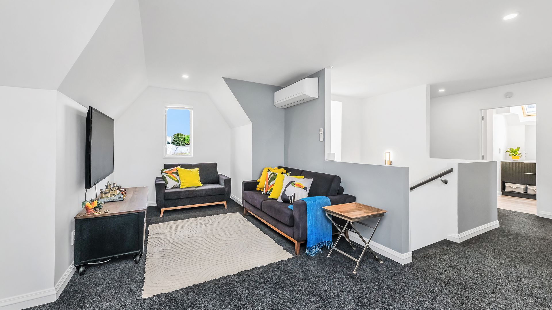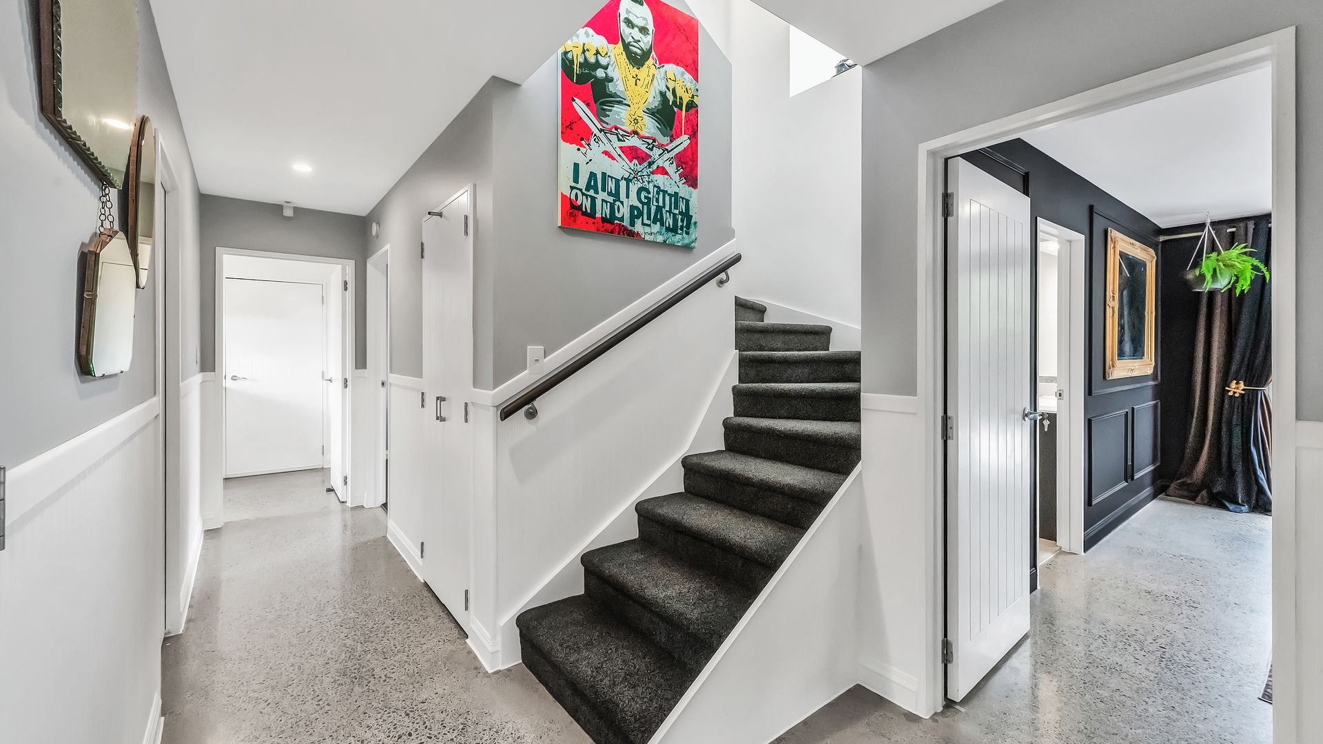 Downstairs sets the tone with polished concrete floors and generous living zones designed for connection and entertaining, while upstairs introduces a whole new layer of versatility, complete with its own living area and kitchenette, ideal for teenagers, guests, or extended family needing independence without isolation.