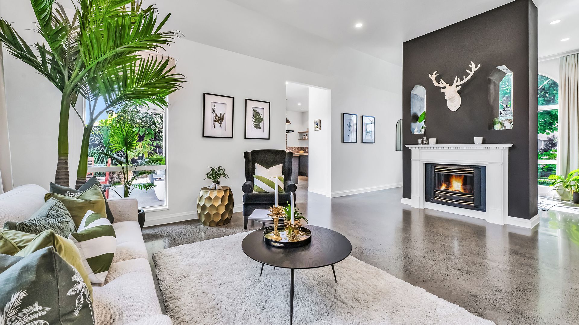 The home's bold architectural presence remains, but it's now paired with contemporary finishes, updated interiors, and beautifully landscaped gardens that soften the scale and create inviting outdoor spaces to relax and entertain.