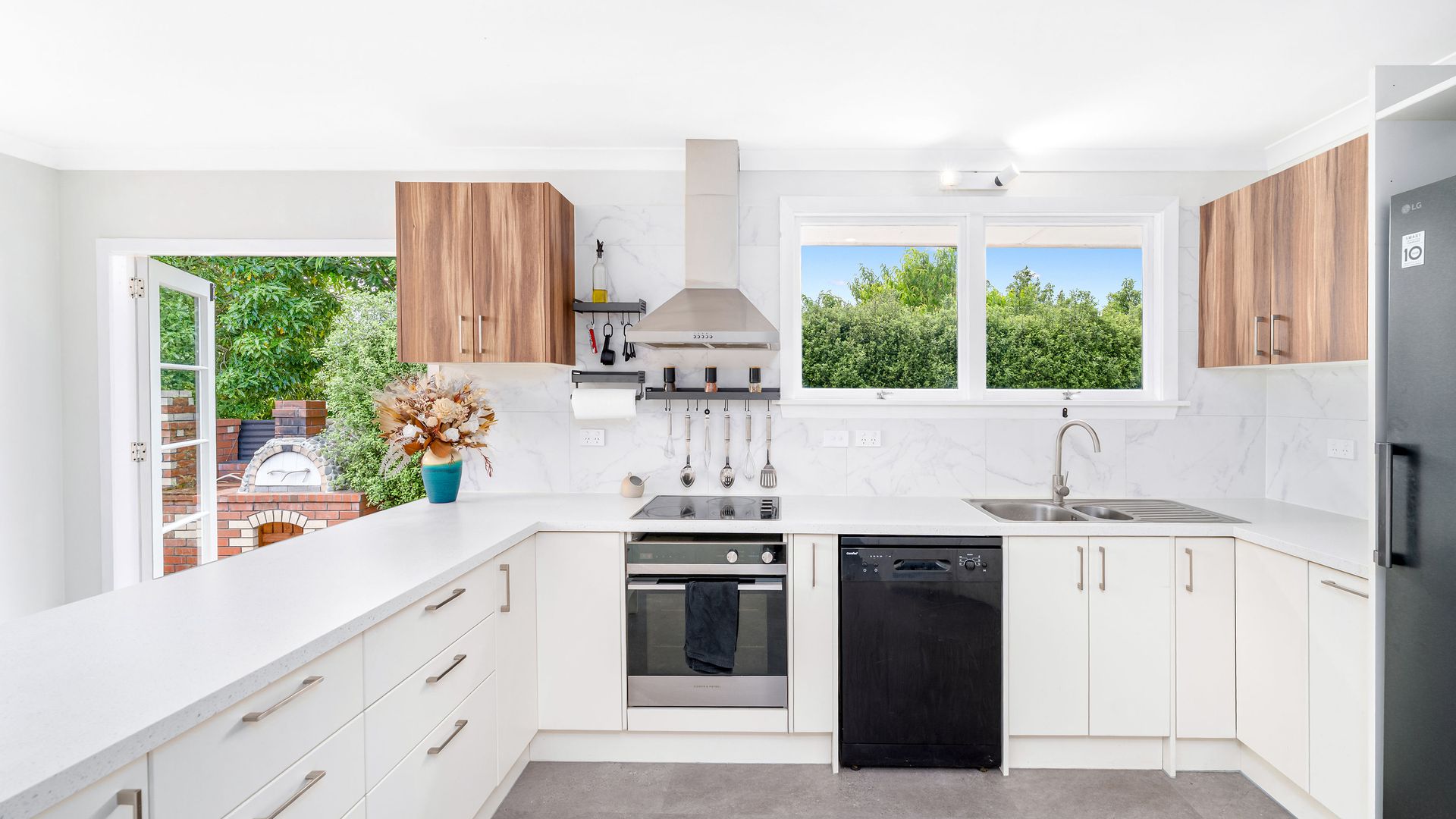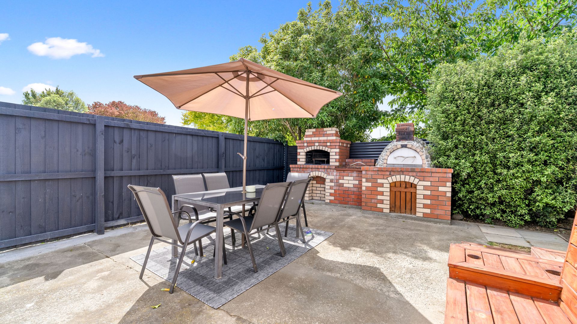 Outside, the home really comes into its own. A sheltered deck, built-in seating, and a substantial brick BBQ complete with pizza oven create a relaxed, private space to enjoy year-round. The gardens are easy-care, with a garden shed neatly tucked away.
