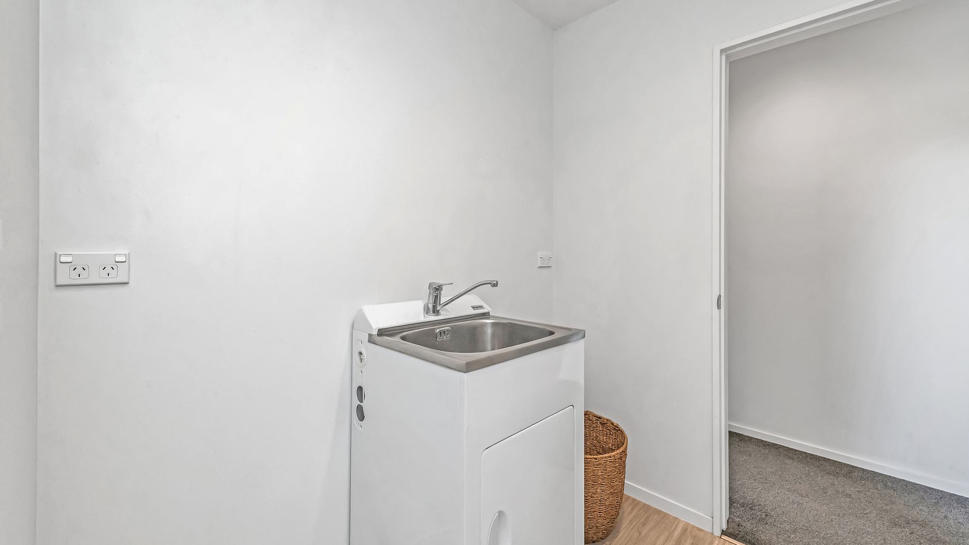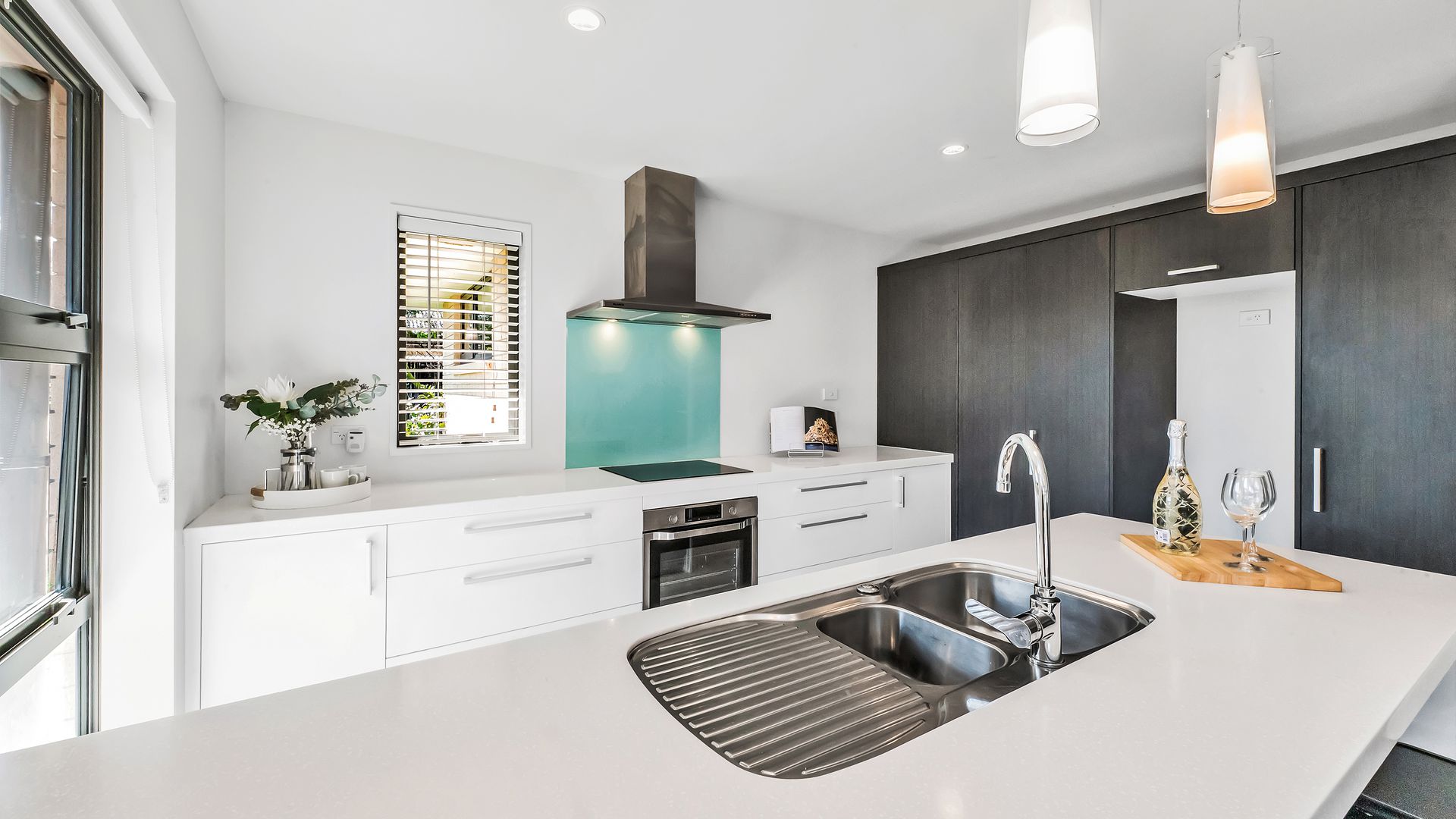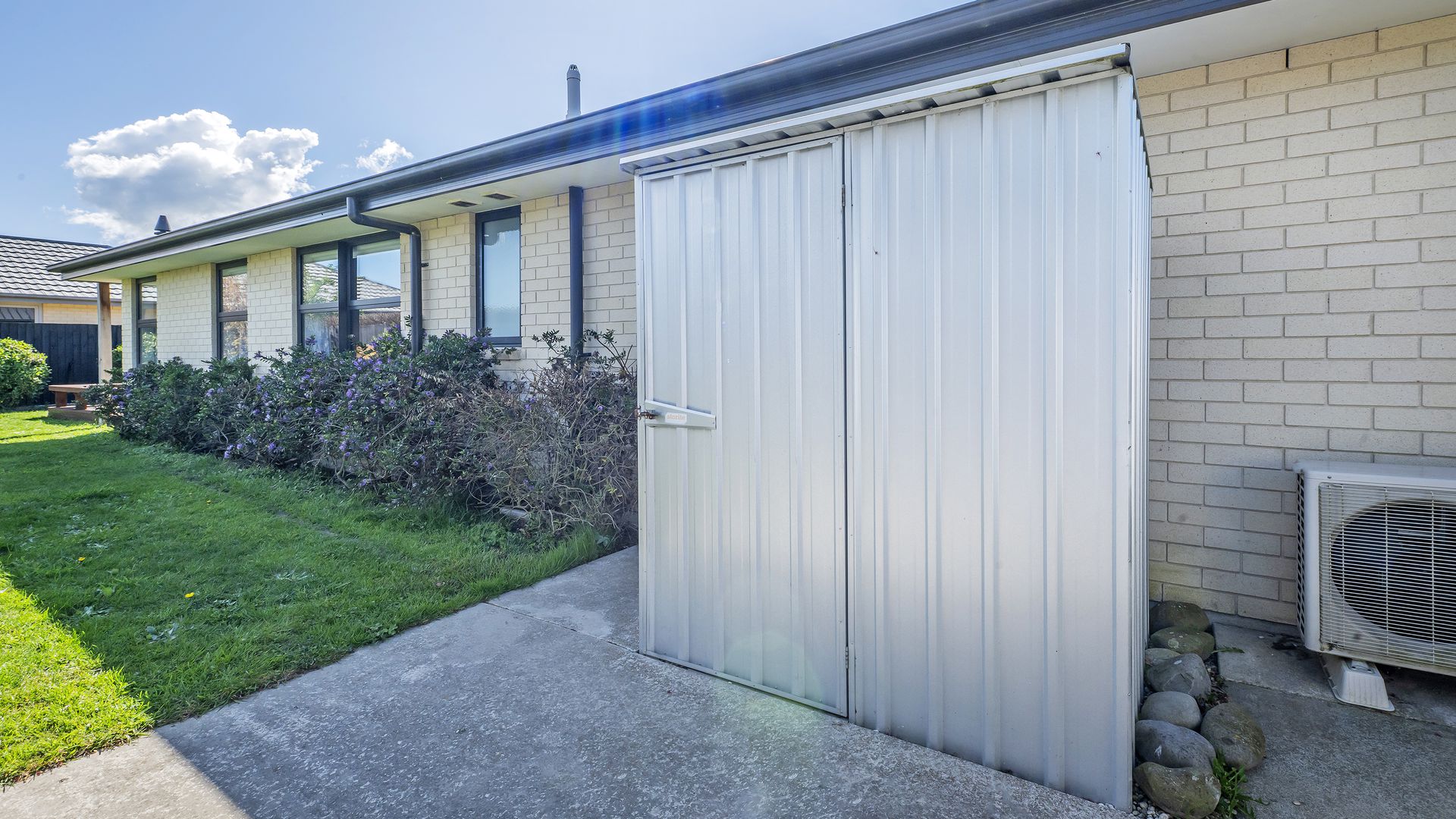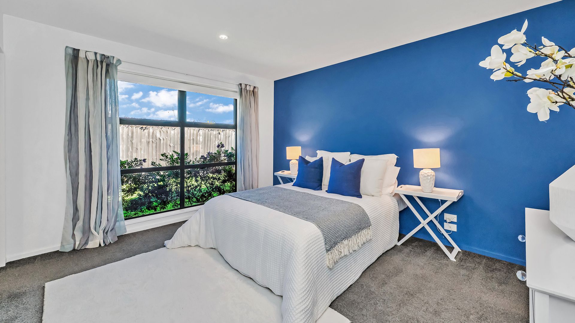 Down a quiet lane in Leeston, this three-bedroom home has been cleverly designed to maximise space and light, giving a sense of roominess that belies its footprint. From the spacious entrance, you enter through double doors into the open-plan kitchen, dining, and living area, which is bright and functional. The area features stone benchtops, a double sink with an InSinkerator, an induction cooktop, and is warmed by a pellet fire and a heat pump.