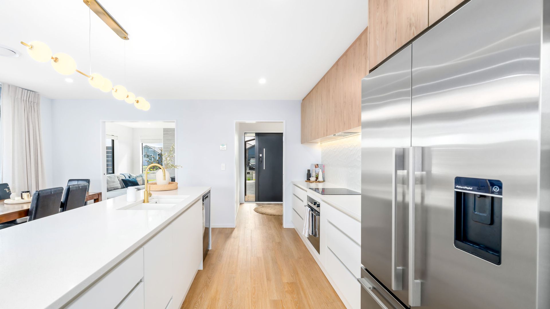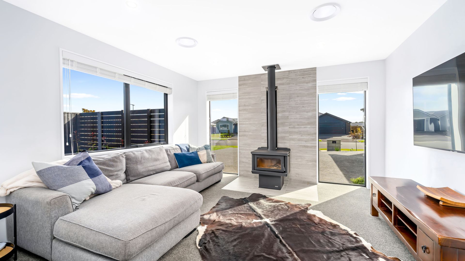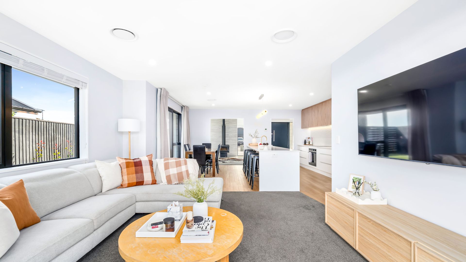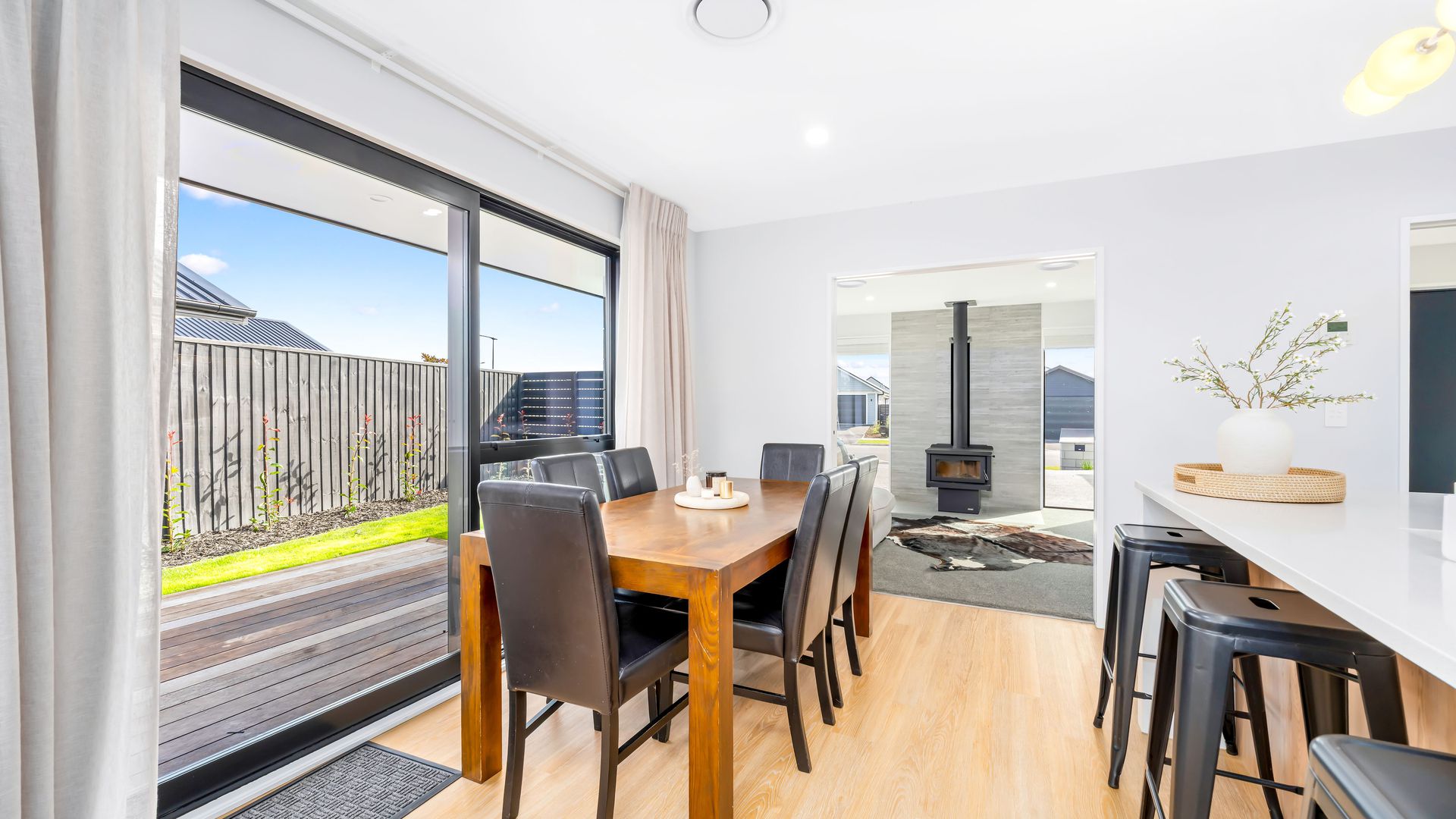 Set on a generous 654sqm section, this stunning modern build offers the perfect balance of style, comfort, and practicality. With three spacious bedrooms, two fully tiled bathrooms, and 210sqm of thoughtfully designed living, it’s a home that truly delivers. At the heart of the home, the sleek, modern kitchen flows effortlessly into the open-plan living and dining area, creating a welcoming hub for everyday life and entertaining. Complementing this space is a separate second lounge, complete with a log burner, providing a warm and inviting retreat for relaxed evenings or quiet family time. Comfort is assured year-round with a ducted heating system throughout the home.