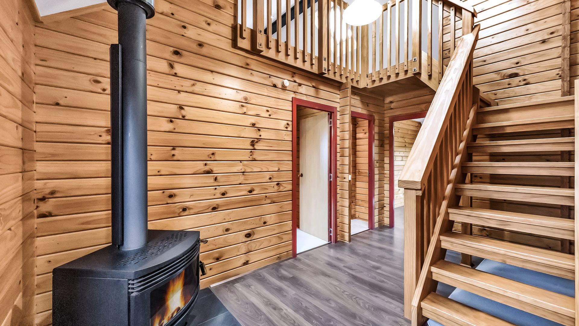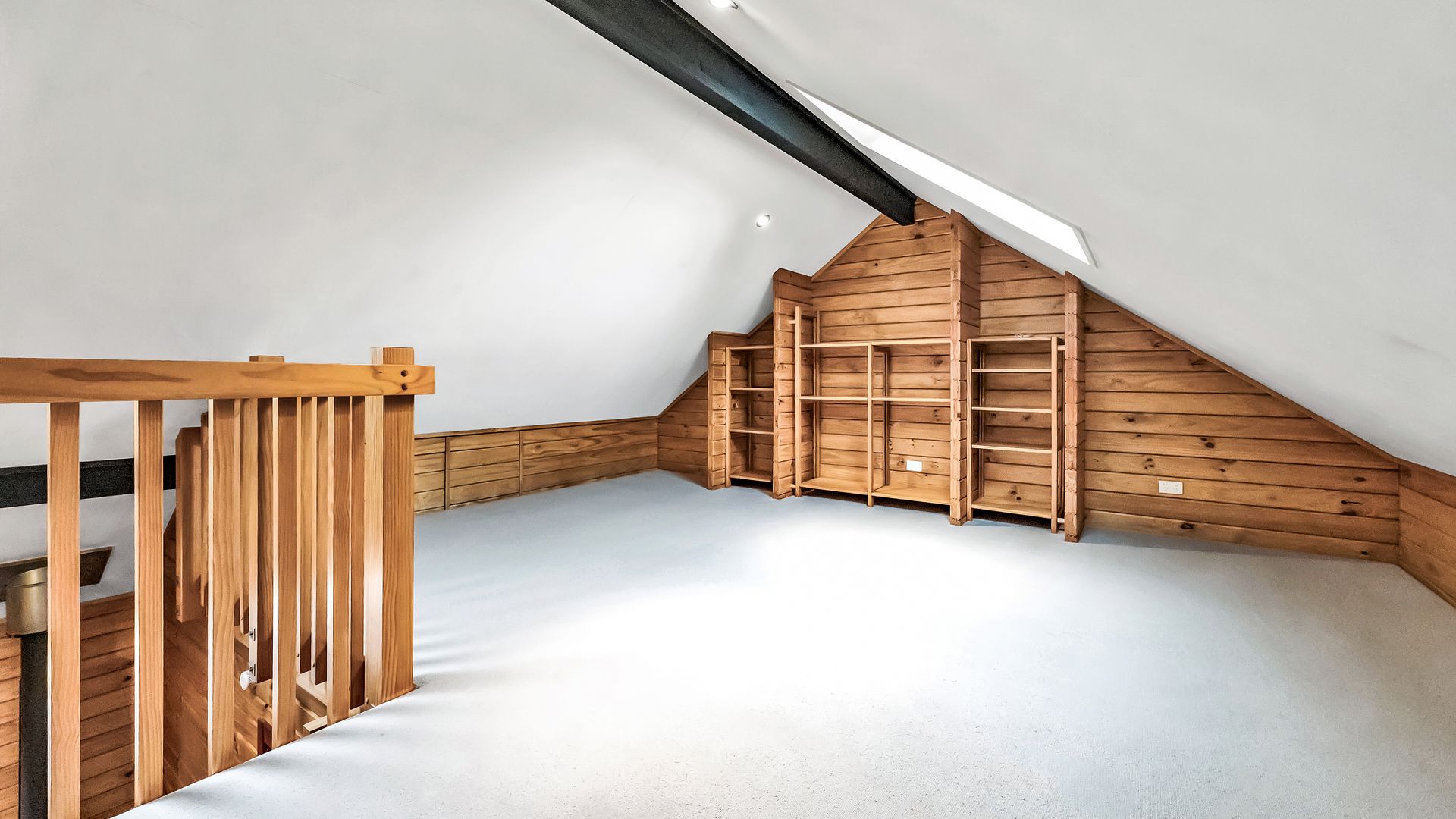 The end wing functions as a fully independent zone, featuring two well-appointed bedrooms with built-in wardrobes, a modern family bathroom, a cosy lounge with verandah access, and a generous loft area for relaxation, study, or storage. A third log burner enhances warmth and comfort throughout this wing, ensuring it feels every bit as inviting as the main home.
