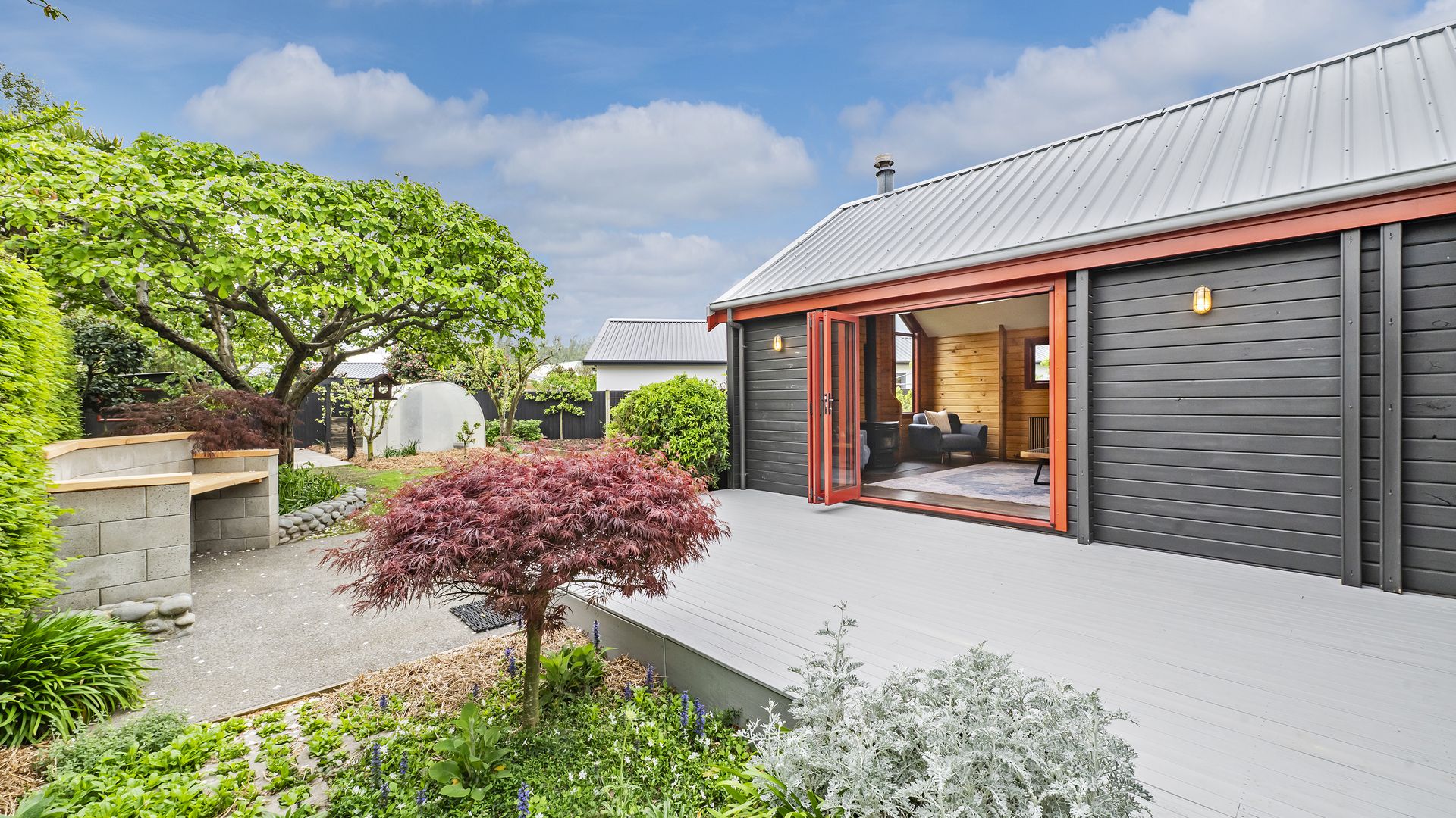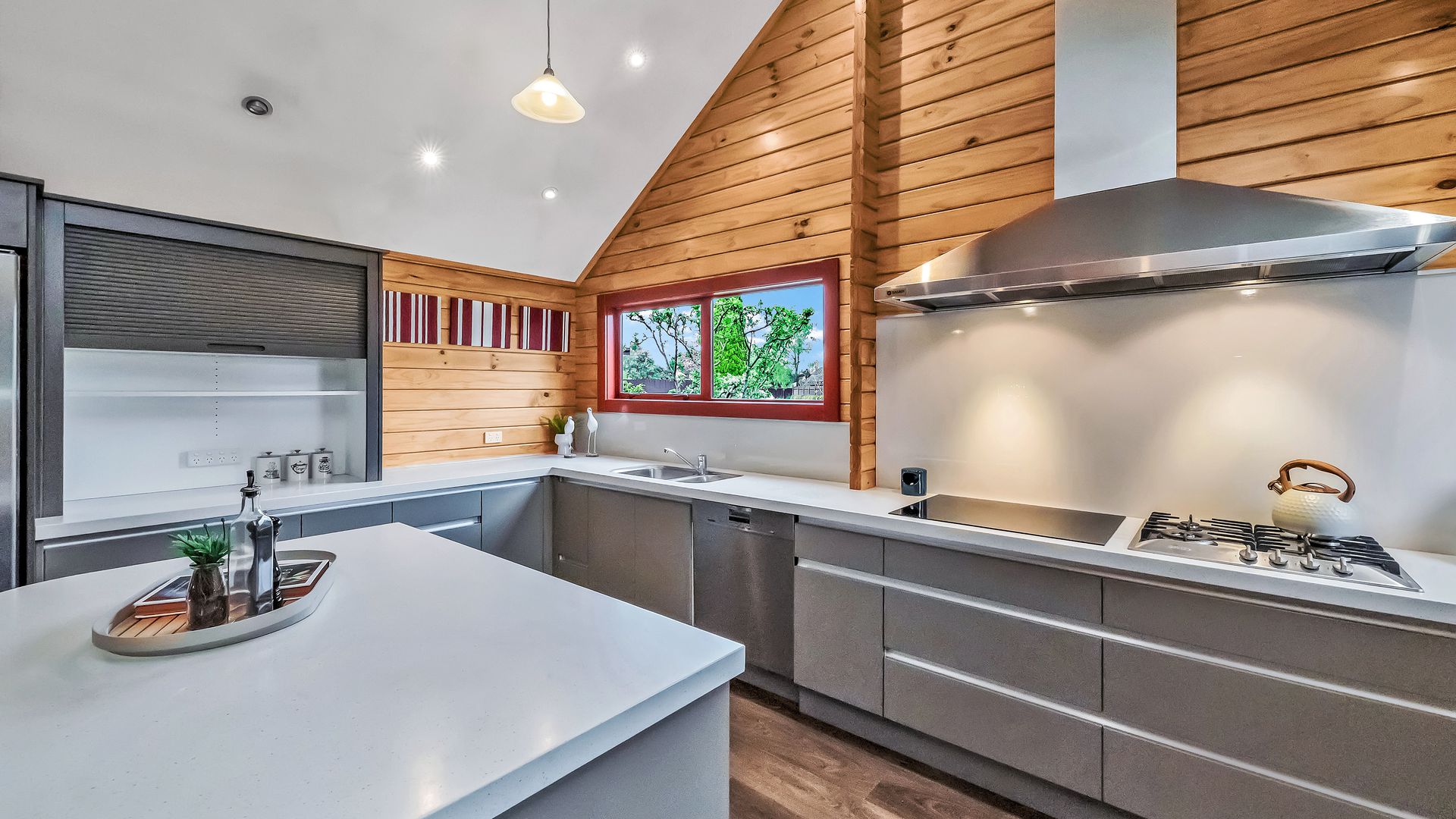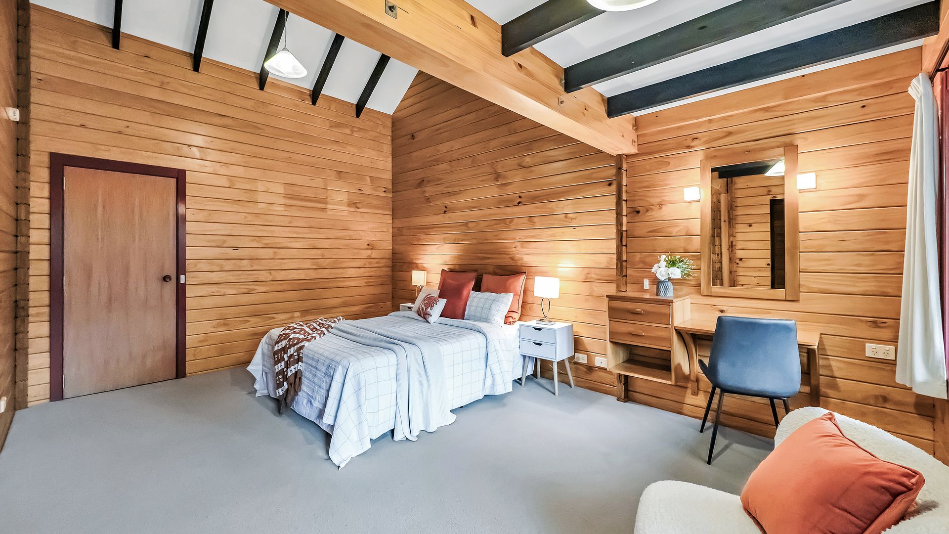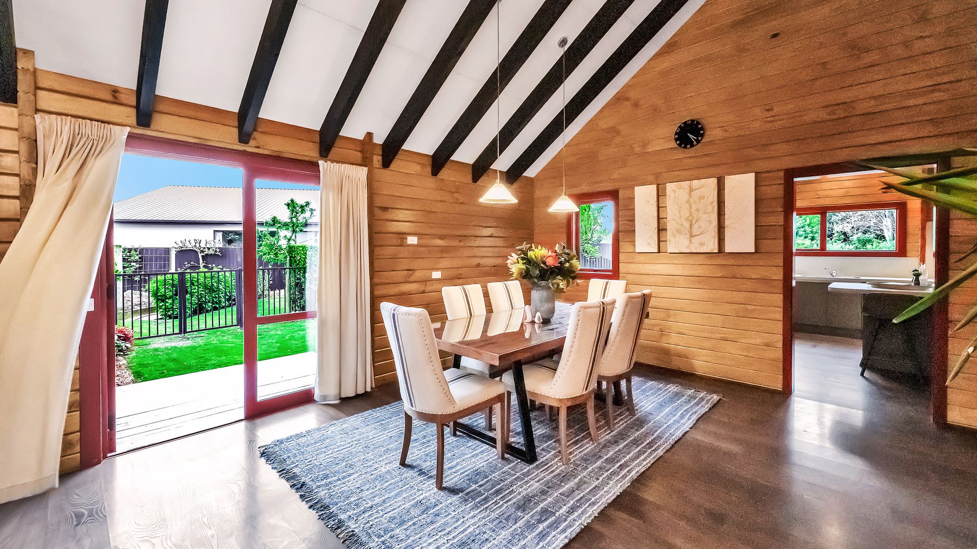 Positioned in the very heart of the township, this exceptional solid-timber residence stands apart for its craftsmanship, scale, and versatility. Designed with striking raised ceilings, exposed joints, and impressive loft spaces, it’s a home that celebrates both architectural character and functional living. Inside, the main living area makes an immediate statement with its soaring ceilings and dual log burners, creating a warm, inviting centrepiece that’s equally suited to entertaining or family life. French and stacker doors draw the outdoors in, opening to expansive decking and a sun-soaked concrete patio.