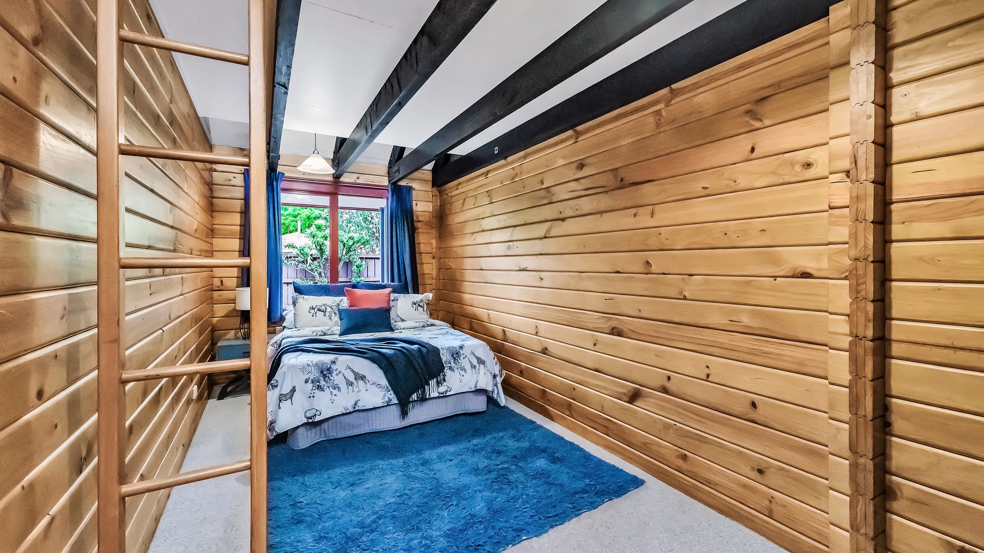 Five bedrooms, each full of personality, include two with ladder-access lofts and built-in beds, ideal as creative spaces or hideaways. The master suite enjoys verandah access, a walk-in wardrobe and a stunning raised ceiling, adding scale and light to an already impressive retreat. The family bathroom combines space and practicality with a thoughtful semi-separate toilet design.